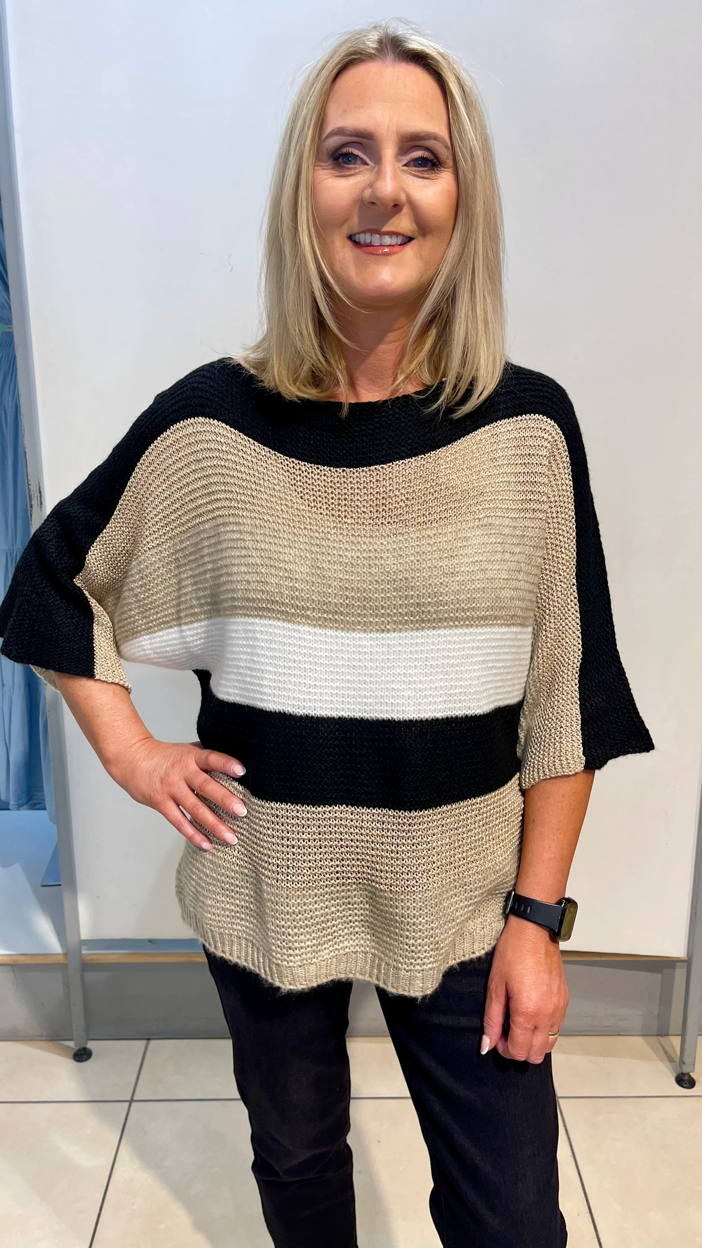 Gorgeous tones in our new Jackie Stripe knit perfect with denims .
